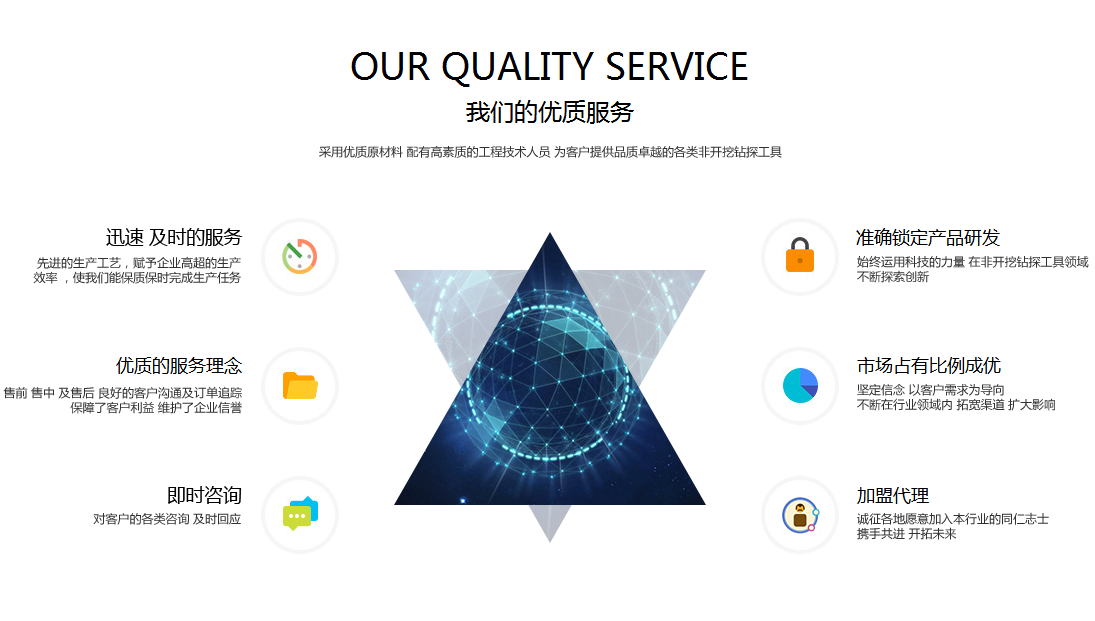 公司是一家从事研发、生产、销售各类非开挖钻杆、非开挖钻具的专业企业,结合非开挖行业一流技术,